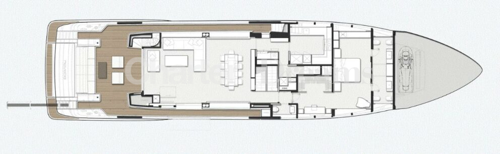 Thanks to her crew of six — professional, discreet, and highly experienced — every detail of the charter is handled to perfection. Her versatile layout, open terraces, airy salon, and panoramic windows ensure a seamless connection with the sea at all times.