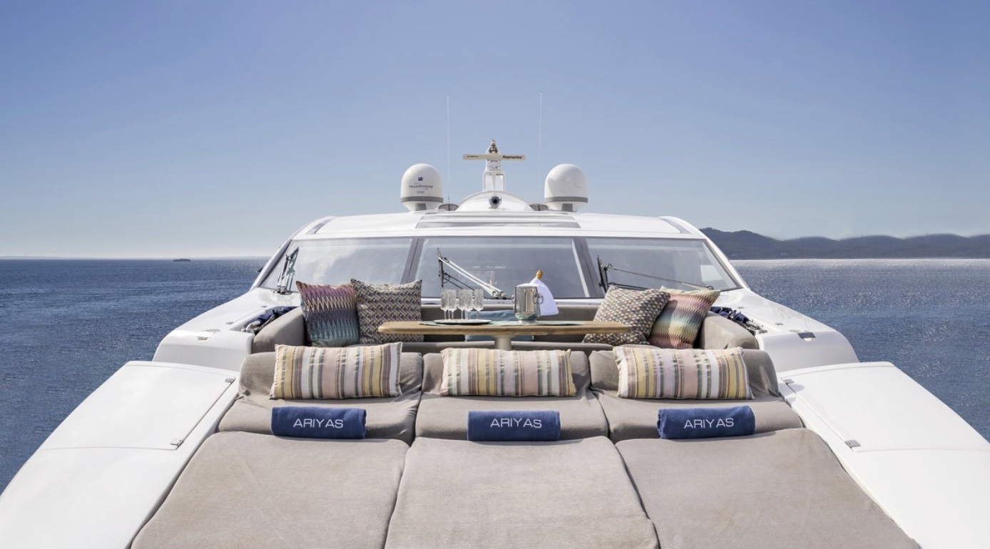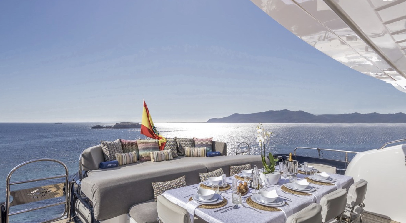 Its versatile layout offers multiple areas to enjoy: a cosy indoor salon, an aft dining table for up to 8 guests, and a bow lounge ideal for intimate breakfasts or sunbathing in total privacy. Perfect for cruising between Palma, Andratx, Portocolom and Cabrera, ARIYAS can also extend her itinerary to Menorca or Ibiza.