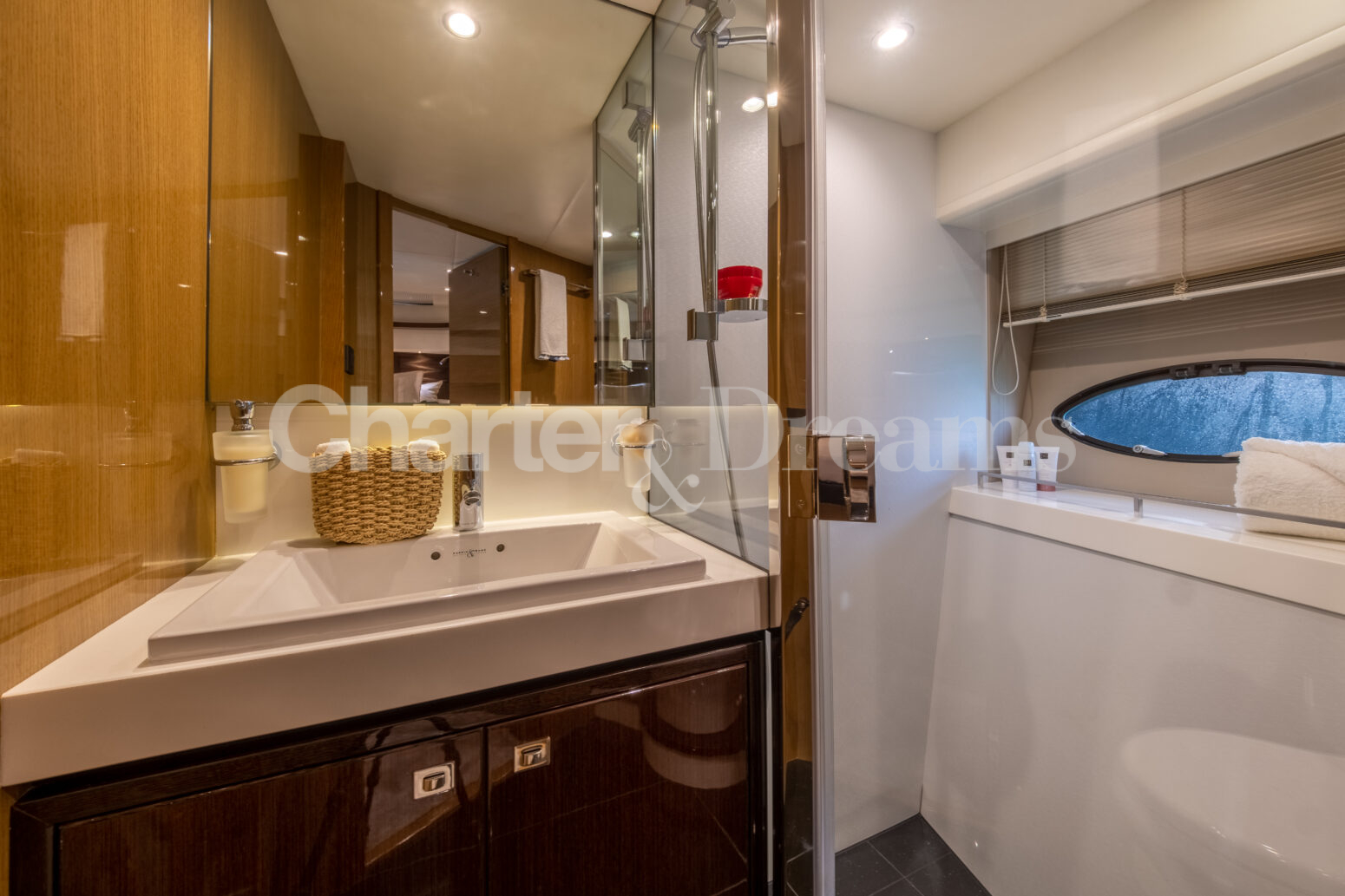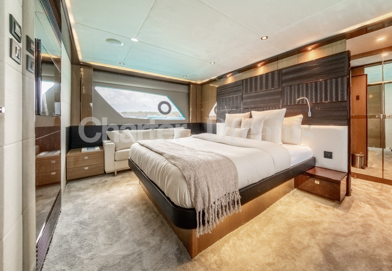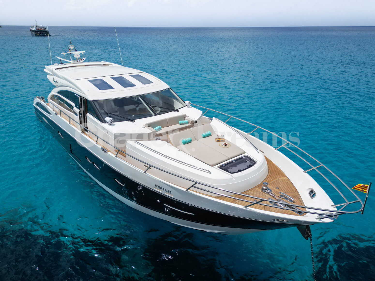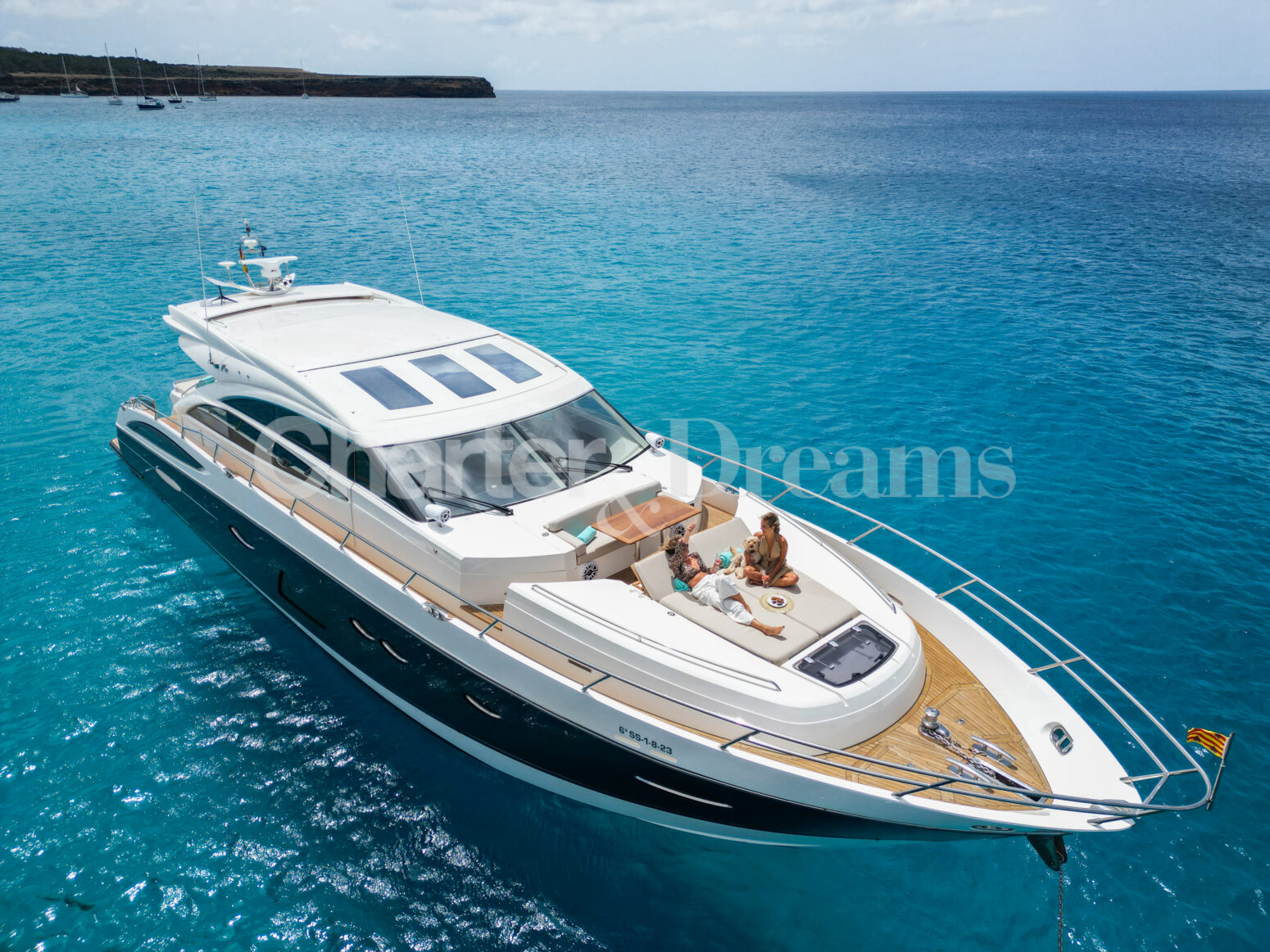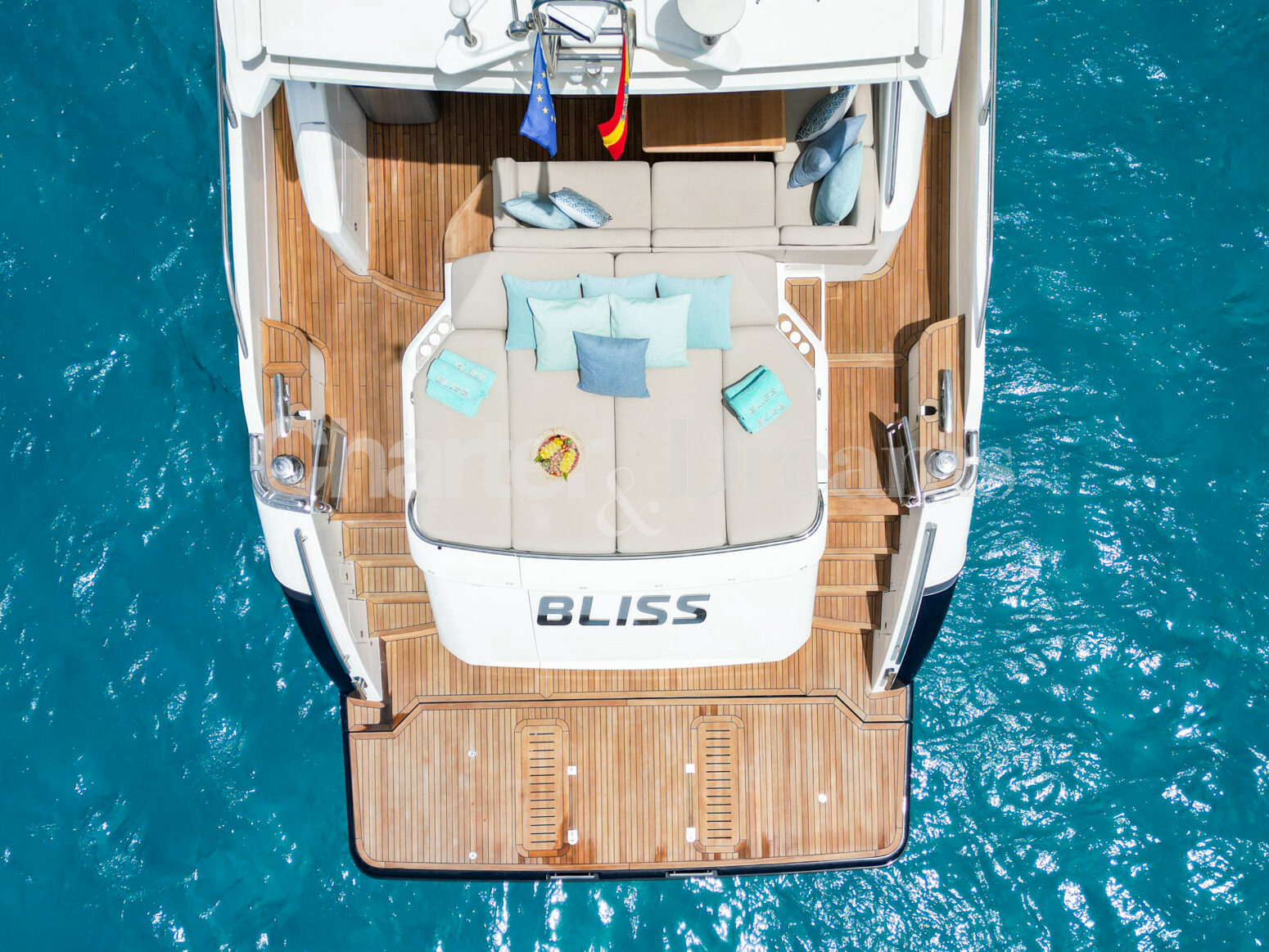 The BLISS yacht is based on a Princess V72, offering a luxurious and contemporary experience for up to 12 guests during the day and 6 guests overnight.