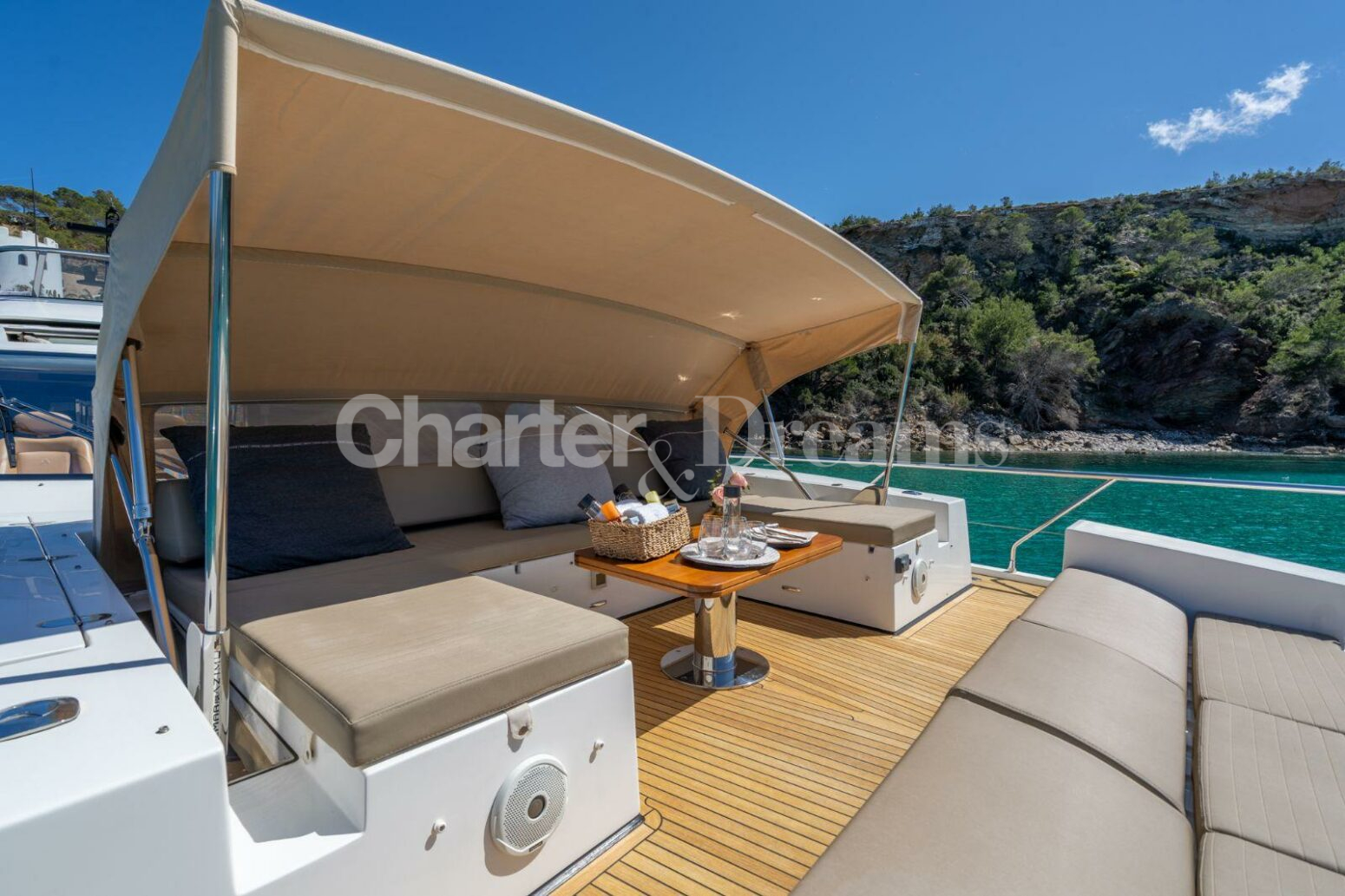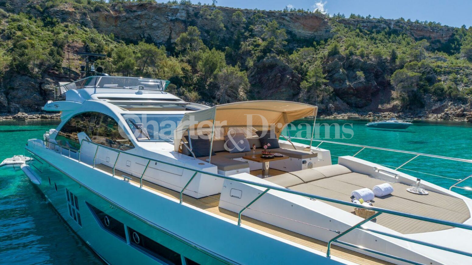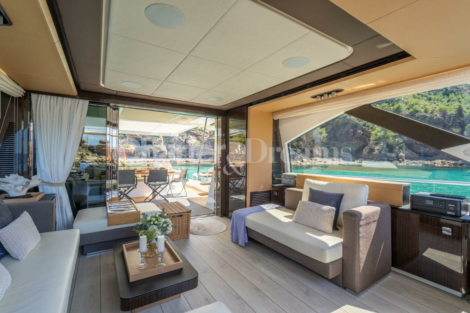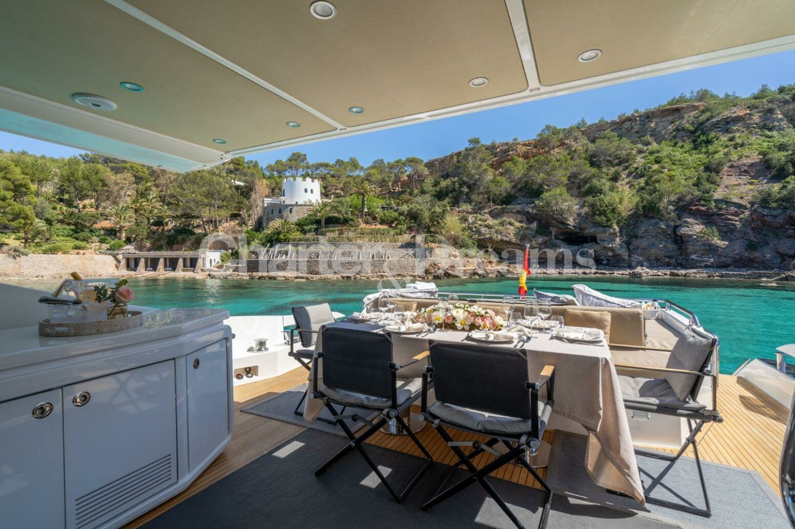 DESTINOS GRAN ABE II has its home port in Marina Ibiza and is available for charter all summer in the Balearic Islands. Its location in Marina Ibiza is undoubtedly unbeatable, where everyone wants to be, next to the luxury boutiques and the famous Lio restaurant. Marina Ibiza is also the meeting point for those visiting ROTO, one of the most fashionable restaurant & club on the island.