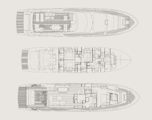 Michisan’s exterior spaces redefine luxury on the water. From the bow to the flybridge, every detail is designed for enjoyment: a hydraulic garage transforms into a Beach Club with sun loungers, perfect for water sports, cocktails at sunset, or simply soaking up the Mediterranean sun.