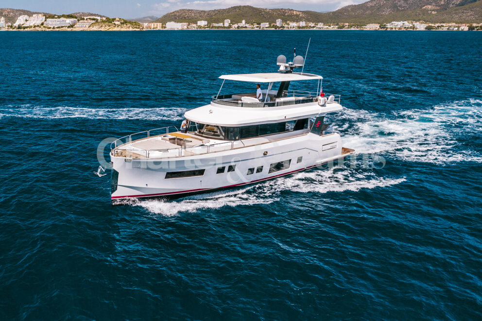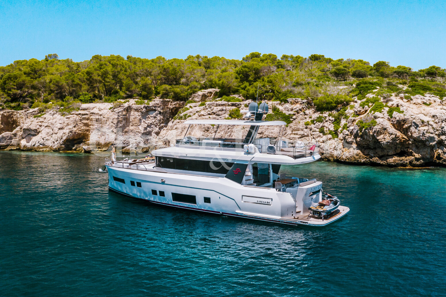 Step aboard SALACIA, a sleek 21-metre Sirena 64 designed for effortless days on the water around Mallorca, Ibiza and Formentera.