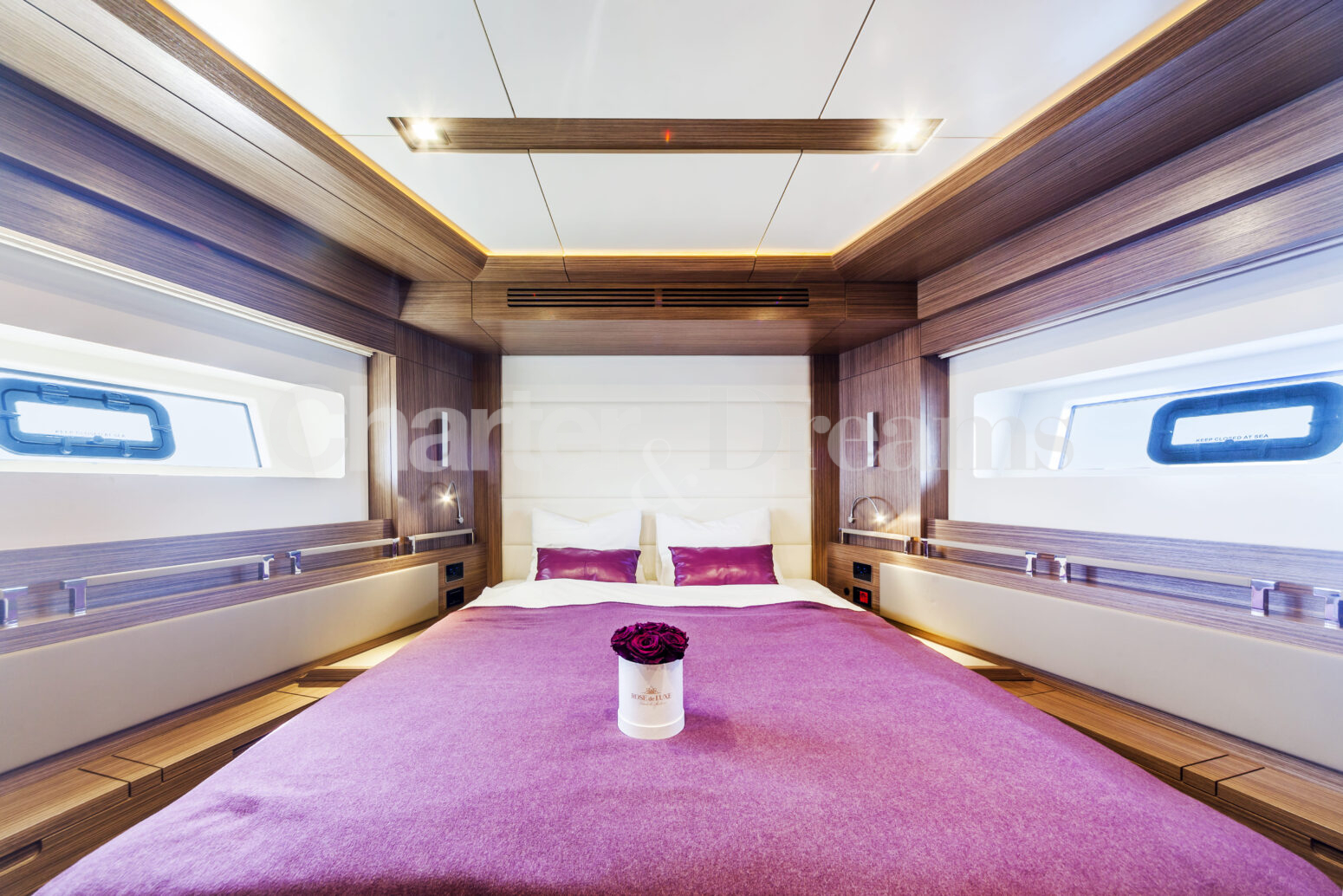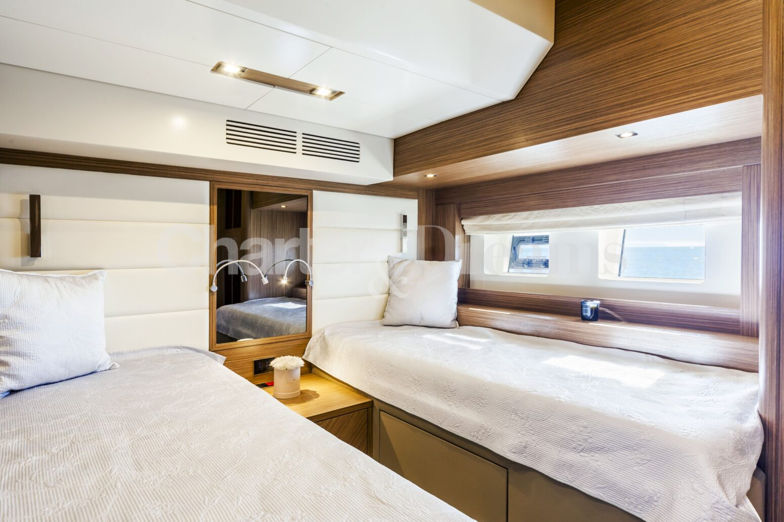 Overnight, SALACIA accommodates up to 6 guests in three stylish cabins: a full-beam Master suite, a VIP double, and a Twin. By day, she welcomes up to 12 guests, making her ideal for relaxed charters and social moments at sea.