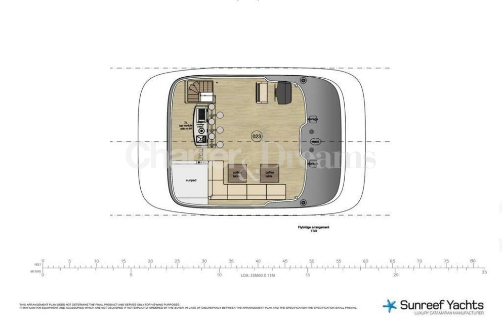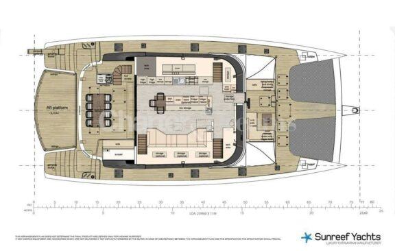 With her outstanding living spaces, the Sunreef 70 balances extreme comfort, great performance under sail, and advanced technology. The yacht’s hull and superstructure are designed to maximize both living space and seaworthiness, ensuring a smooth and enjoyable voyage. YOLO TOO cruises at a comfortable speed of 9 knots and can reach a maximum speed of 11.5 knots, offering both performance and relaxation on the water.