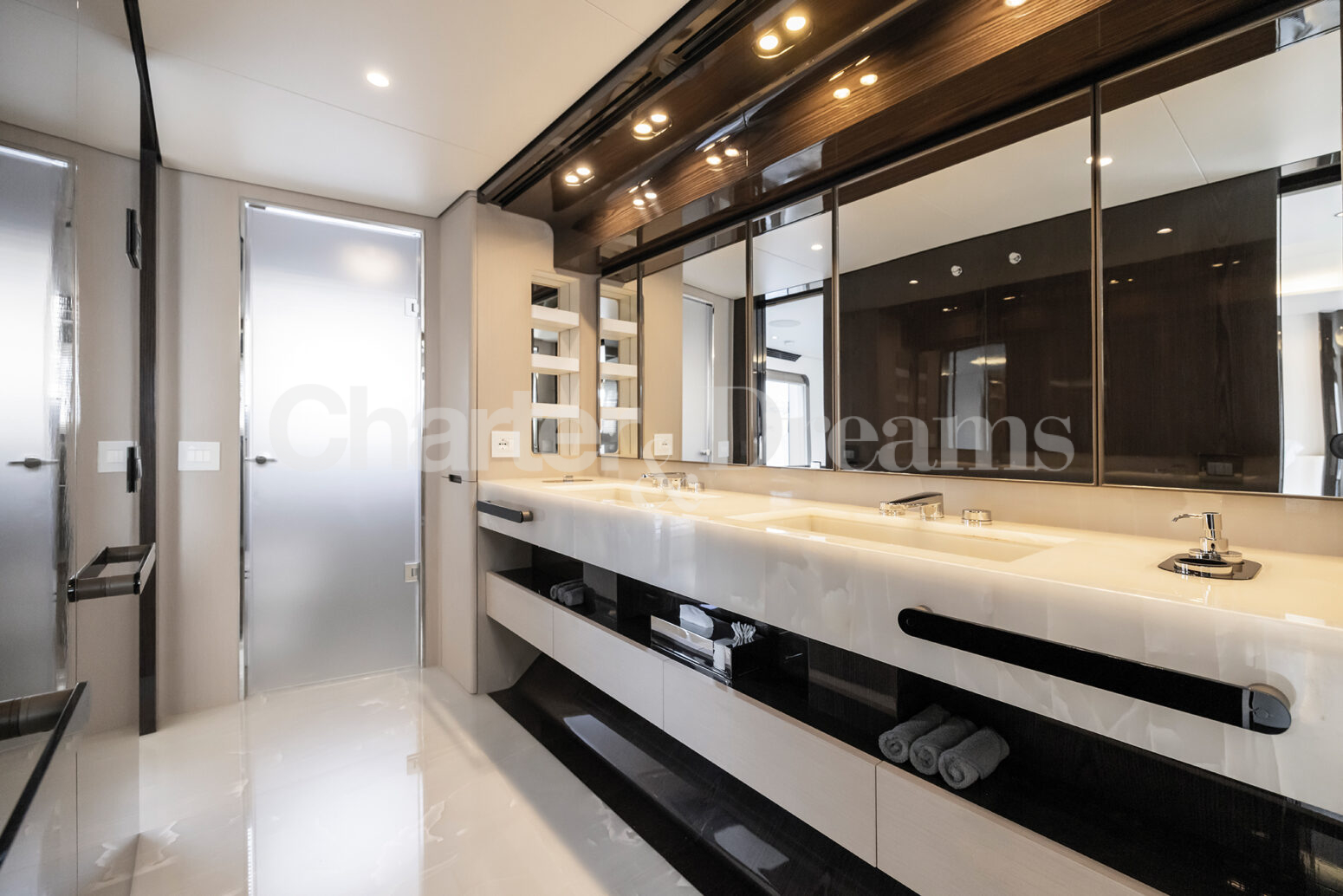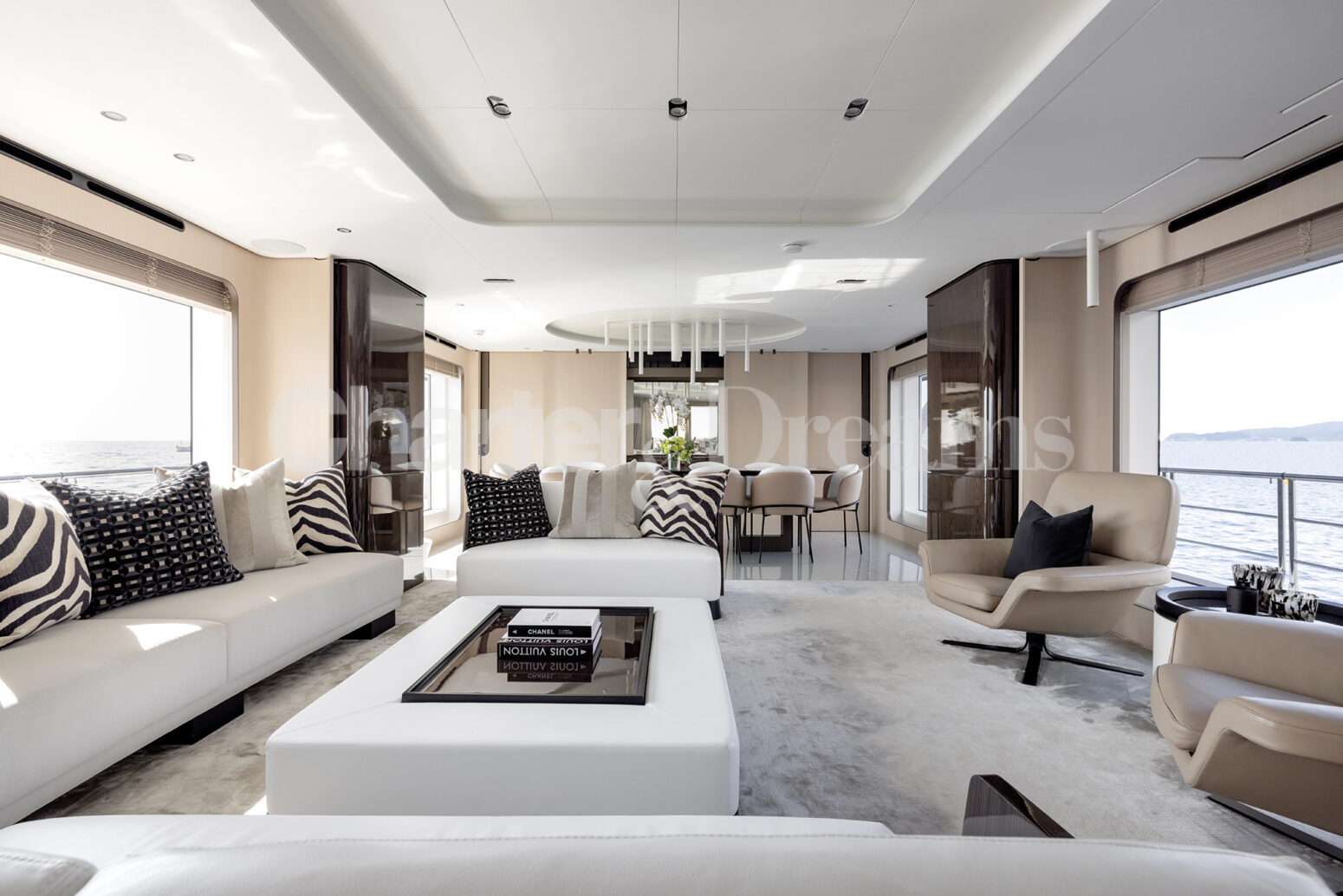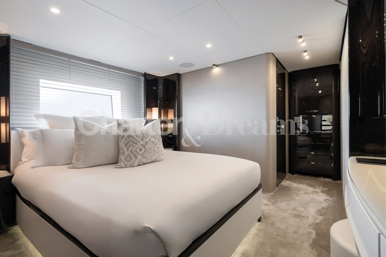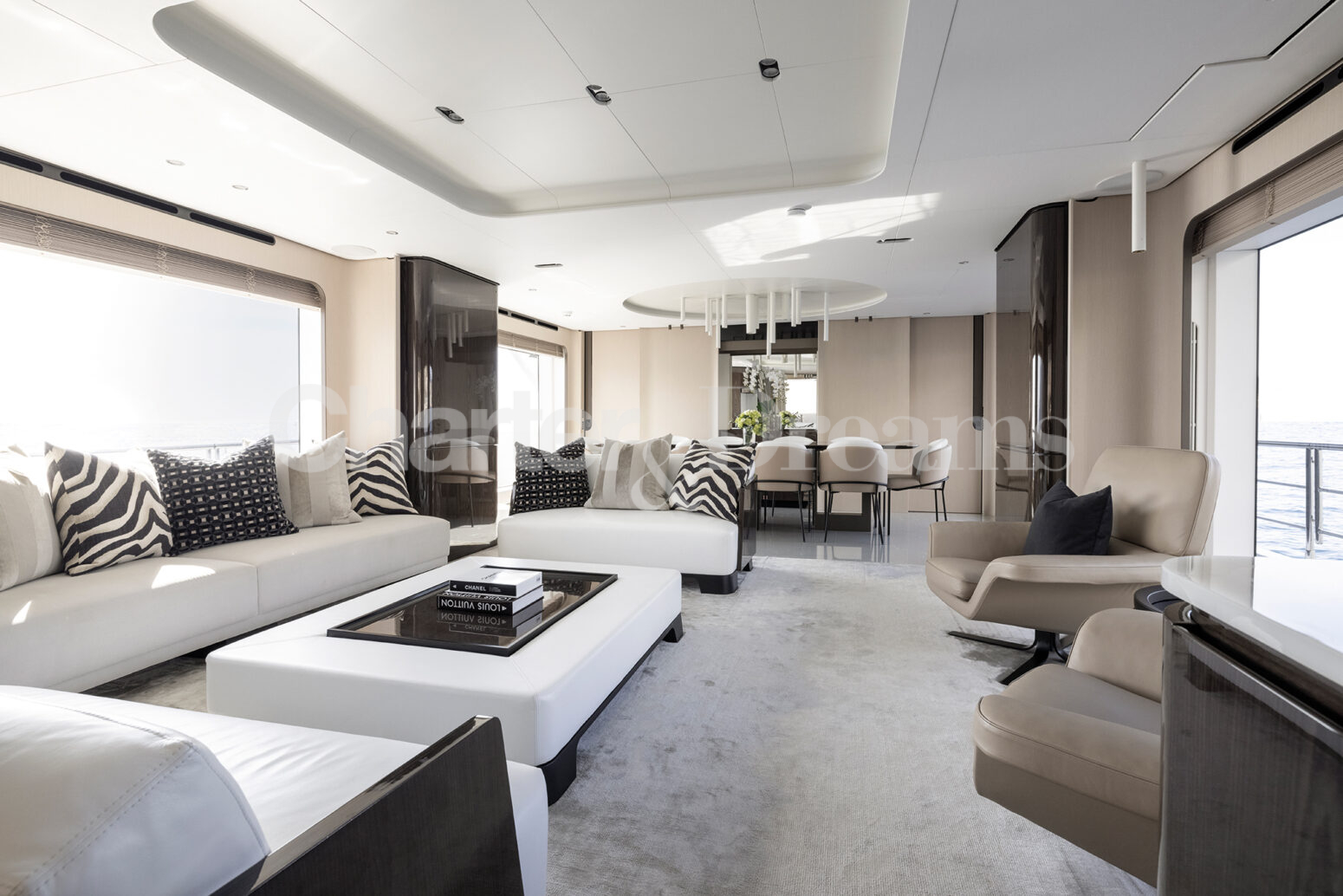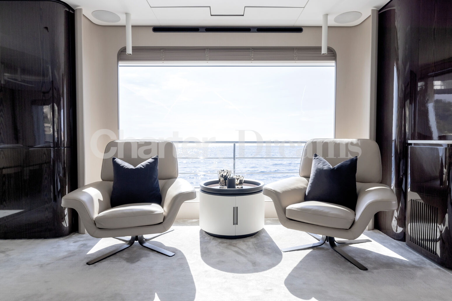 Las zonas al aire libre son un testimonio del encanto del yate, con amplias cubiertas que ofrecen vistas panorámicas y un amplio espacio para la relajación y el entretenimiento. Ya sea tomando el sol balear en el solárium, disfrutando de una comida al aire libre o realizando actividades acuáticas, cada momento a bordo promete lujo y placer.